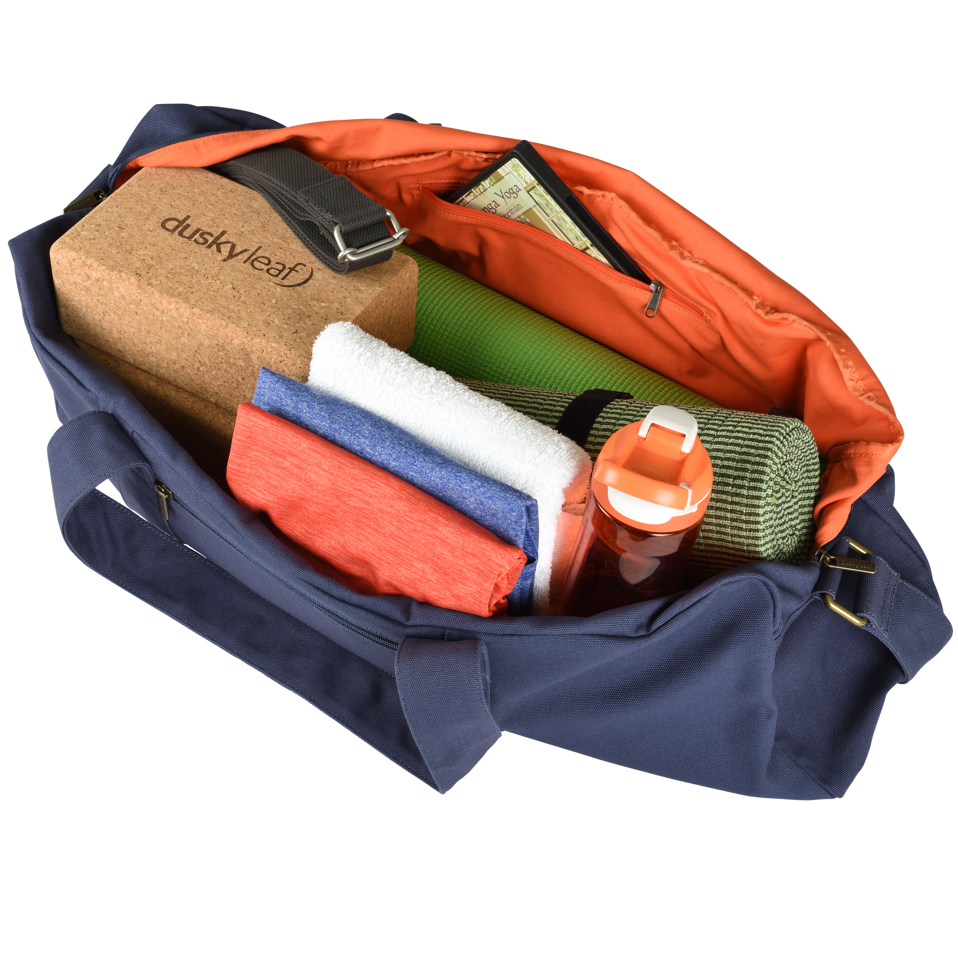 Our Big Yoga Bag is roomy enough to carry a yoga mat, towel, water bottle, change of clothing — even a full-sized yoga block. It features inside and outside pockets, as well as wide handles and an adjustable shoulder strap that make it a breeze for you to carry your yoga gear around.