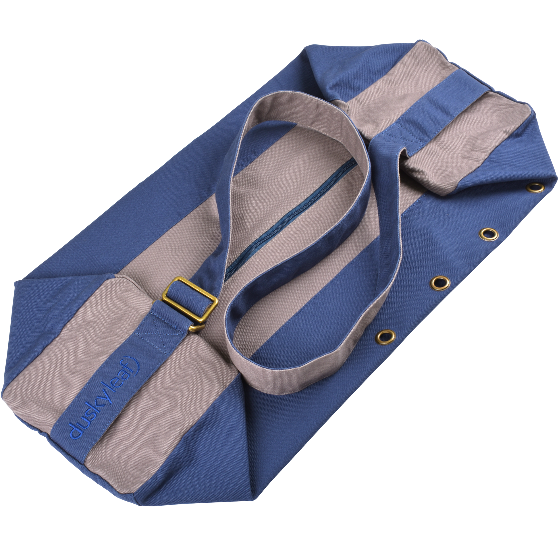 Compared to a round mat bag of equal width, the Cubist Yoga Bag from Dusky Leaf offers over 27% more space. Imagine packing your yoga mat, 2 yoga blocks, a yoga strap, a water bottle, a book, your smartphone, a clean T-shirt, and a towel. This yoga bag has room for all that gear, plus some.